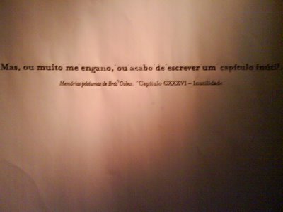 Depois do almoço (bife a cavalo) em um típico buteco carioca em SP, o Pirajá, ele voltou para o trabalho e eu me encaminhei para o programa que venho querendo fazer das últimas 5 vezes que estive em SP: O museu da língua portuguesa. Fui de ônibus pela Rebouças até a estação do metrô da consolação e de lá até a estação da luz, onde fica o museu. Sim, na estação mesmo. Pra começar o ingresso, inteiro, adulto, custa R$ 4,00. O museu é um expetáculo (com x do sotaque carioca). Mas vou falar apenas da exposição sobre Machado de Assis.